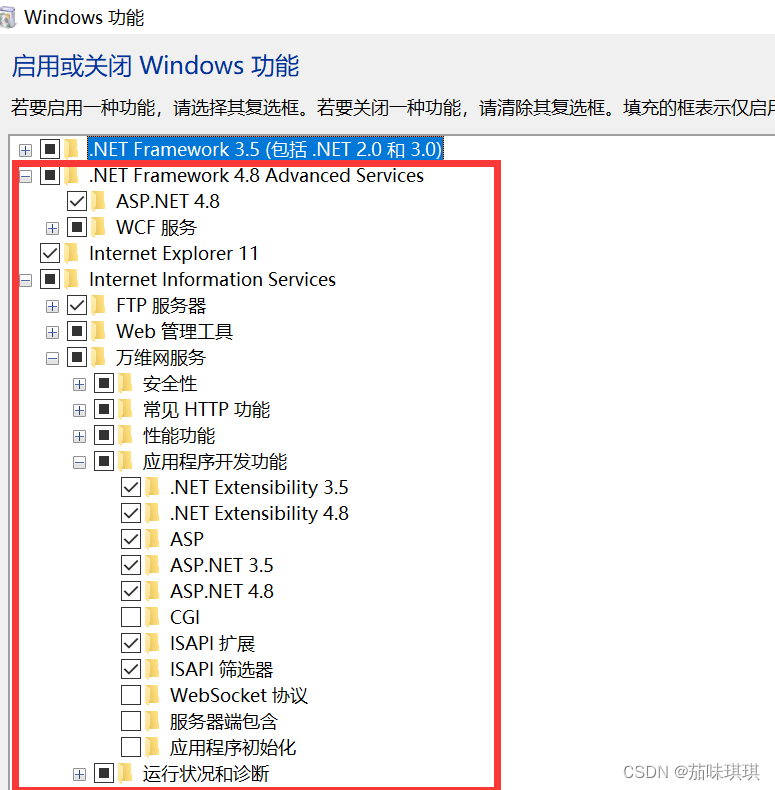 找到控制面板——程序——啟用或關(guān)閉Windows功能,把對(duì)應(yīng)的都勾上