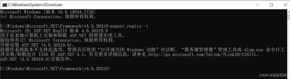 輸入aspnet_regiis -i,顯示安裝成功【安裝與配置ASP.NET】
