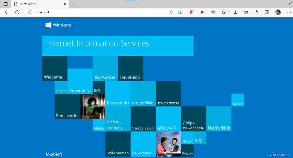 然后打開(kāi)瀏覽器輸入:localhost 顯示網(wǎng)頁(yè)則代表IIS服務(wù)安裝成功【不同瀏覽器/不同操作系統(tǒng)頁(yè)面可能不同】