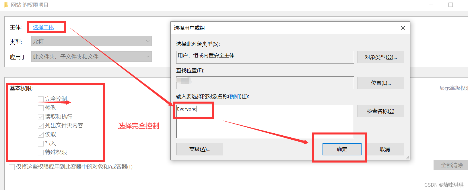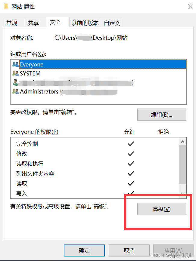 在瀏覽網(wǎng)站之前,先將存放發(fā)布的網(wǎng)站所在文件夾修改權(quán)限,添加一個(gè)“Everyone”用戶,權(quán)限為完全控制。防止報(bào)錯(cuò)顯示無(wú)權(quán)限訪問(wèn)