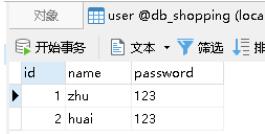 <%@ page contentType="text/html;charset=UTF-8" language="java" %><html> <head> <title>AJAX實際操作注冊驗證用戶名</title> <script src="js/jquery-1.8.3.js"></script> </head> <body> <form action="#" method="post"> <script type="text/javascript"> $(function () { $("[name=userName]").blur(function () { $.ajax({ type:"get", url:"findName?name="+$("[name=userName]").val(), dataType:"text", success:function (data) { //alert(data); if (data=="1"){ $("#show").html("用戶已存在!!!") }else { $("#show").html("用戶名可用") } } }) }) }); </script> 賬號<input type="text" name="userName"><span id="show"></span></br> 密碼<input type="password" name="password"></br> <input type="submit" value="提交"> </form> </body></html>數據庫如下: