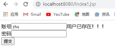 import javax.servlet.ServletException;import javax.servlet.annotation.WebServlet;import javax.servlet.http.HttpServlet;import javax.servlet.http.HttpServletRequest;import javax.servlet.http.HttpServletResponse;import java.io.IOException;@WebServlet("/findName")public class FindNameServlet extends HttpServlet { protected void doPost(HttpServletRequest request, HttpServletResponse response) throws ServletException, IOException { request.setCharacterEncoding("utf-8"); response.setContentType("text/html;charset=utf-8"); String name = request.getParameter("name"); UserDao userDao = new UserDaoImpl(); User name1 = userDao.findName(name); if (name1!=null){ response.getWriter().write("1"); }else { response.getWriter().write("2"); } } protected void doGet(HttpServletRequest request, HttpServletResponse response) throws ServletException, IOException { this.doPost(request, response); }}JSP頁面