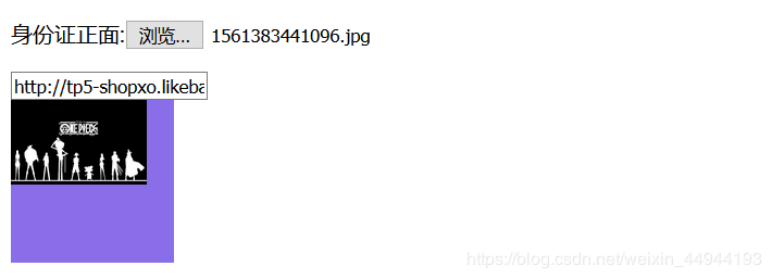 <html> <head> <meta charset="UTF-8"> <title>文件上傳</title> <style type="text/css"> #front { width: 120px; height: 120px; background-color: #8A6DE9; } #frontage { width: 120px; height: 120px; background-color: #8A6DE9; } #banking { width: 120px; height: 120px; background-color: #8A6DE9; } #house { width: 120px; height: 120px; background-color: #8A6DE9; } </style> <script src="http://libs.baidu.com/jquery/1.9.0/jquery.js"></script> </head> <body> <form id="uploadForm"> <!-- 1 --> <p>身份證正面:<input type="file" name="drawing" id="drawing" onchange="identity(this)" autocomplete="off" /></p> <input type="text" name="" id="fronts" value="" /> <div id="front"></div> <!-- 1 --> <!-- 2 --> <p>身份證反面:<input type="file" name="reverse" id="reverse" onchange="card(this)" autocomplete="off" /></p> <input type="text" name="" id="frontages" value="" /> <div id="frontage"></div> <!-- 2 --> <!-- 3 --> <p>銀行卡正面: <input type="file" name="transaction" id="transaction" onchange="obverse(this)" autocomplete="off" /></p> <input type="text" name="" id="bankings" value="" /> <div id="banking"></div> <!-- 3 --> <!-- 4 --> <p>銀行卡反面: <input type="file" name="redlining" id="redlining" onchange="versa(this)" autocomplete="off" /></p> <input type="text" name="" id="houses" value="" /> <div id="house"></div> <!-- 4 --> </form> </body></html><!-- 身份證正面 --><script type="text/javascript"> function identity() { var formData = new FormData(); formData.append("drawing", $("#drawing")[0].files[0]); // console.log(formData); $.ajax({ url: "http://tp5-shopxo.likeball.top/index.php?s=/api/Mi/measurement", type: "POST", data: formData, dataType: "JSON", cache: false, processData: false, contentType: false, success: function(data) { console.log(data); if (data["whether"] == true) { var result = ""; var result1 = ""; result += "<img src="" + "http://tp5-shopxo.likeball.top/" + data["site"] + "" width="100">"; result1 += "http://tp5-shopxo.likeball.top/" + data["site"]; $("#front").html(result); $("#fronts").val(result1); } }, error: function(data) { console.log("錯誤"); } }); }</script><!-- 身份證反面 --><script type="text/javascript"> function card() { var formData = new FormData(); formData.append("reverse", $("#reverse")[0].files[0]); // console.log(formData); $.ajax({ url: "http://tp5-shopxo.likeball.top/index.php?s=/api/Mi/measurement", type: "POST", data: formData, dataType: "JSON", cache: false, processData: false, contentType: false, success: function(data) { console.log(data); if (data["whether"] == true) { var result = ""; var result1 = ""; result += "<img src="" + "http://tp5-shopxo.likeball.top/" + data["site"] + "" width="100">"; result1 += "http://tp5-shopxo.likeball.top/" + data["site"]; $("#frontage").html(result); $("#frontages").val(result1); } }, error: function(data) { console.log("錯誤"); } }); }</script><!-- 銀行卡正面 --><script type="text/javascript"> function obverse() { var formData = new FormData(); formData.append("transaction", $("#transaction")[0].files[0]); // console.log(formData); $.ajax({ url: "http://tp5-shopxo.likeball.top/index.php?s=/api/Mi/measurement", type: "POST", data: formData, dataType: "JSON", cache: false, processData: false, contentType: false, success: function(data) { console.log(data); if (data["whether"] == true) { var result = ""; var result1 = ""; result += "<img src="" + "http://tp5-shopxo.likeball.top/" + data["site"] + "" width="100">"; result1 += "http://tp5-shopxo.likeball.top/" + data["site"]; $("#banking").html(result); $("#bankings").val(result1); } }, error: function(data) { console.log("錯誤"); } }); }</script><!-- 銀行卡反面 --><script type="text/javascript"> function versa() { var formData = new FormData(); formData.append("redlining", $("#redlining")[0].files[0]); // console.log(formData); $.ajax({ url: "http://tp5-shopxo.likeball.top/index.php?s=/api/Mi/measurement", type: "POST", data: formData, dataType: "JSON", cache: false, processData: false, contentType: false, success: function(data) { console.log(data); if (data["whether"] == true) { var result = ""; var result1 = ""; result += "<img src="" + "http://tp5-shopxo.likeball.top/" + data["site"] + "" width="100">"; result1 += "http://tp5-shopxo.likeball.top/" + data["site"]; $("#house").html(result); $("#houses").val(result1); } }, error: function(data) { console.log("錯誤"); } }); }</script>tp控制器中