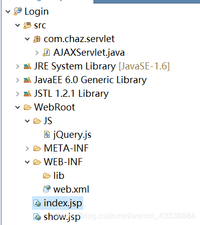 package com.chaz.servlet;import java.io.IOException;import java.io.PrintWriter;import javax.servlet.ServletException;import javax.servlet.http.HttpServlet;import javax.servlet.http.HttpServletRequest;import javax.servlet.http.HttpServletResponse;public class AJAXServlet extends HttpServlet { public void doGet(HttpServletRequest request, HttpServletResponse response) throws ServletException, IOException { doPost(request, response); } public void doPost(HttpServletRequest request, HttpServletResponse response) throws ServletException, IOException { response.setContentType("text/html;charset=utf-8"); request.setCharacterEncoding("utf-8"); PrintWriter out = response.getWriter(); String name = "ZhangSan"; String pwd = "Zhang123456"; String ajaxName = request.getParameter("name"); String ajaxPwd = request.getParameter("pwd"); System.out.println(ajaxName+":"+ajaxPwd); if(name.equals(ajaxName)&&pwd.equals(ajaxPwd)){ out.print("ok"); }else{ out.print("Error"); } out.flush(); out.close(); }}web.xml: