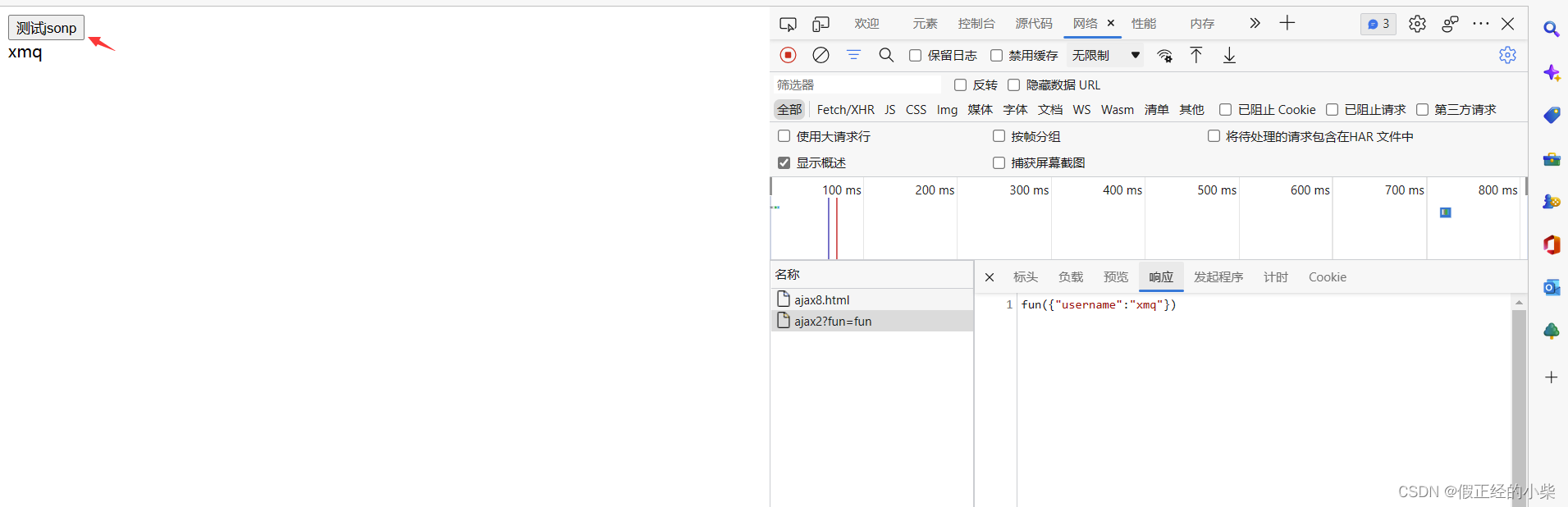 注意:jsonp解決跨域的時候,只支持GET請求。不支持post請求。這是因為jsonp本就是動態(tài)的創(chuàng)建script標簽從而達到跨域的效果。