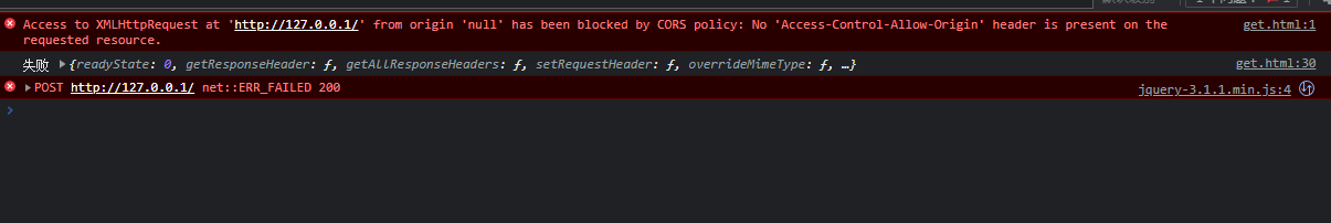 如圖所示,這是通過(guò)jquery封裝的ajax請(qǐng)求了一個(gè)本地的php文件(無(wú)框架),console提示CORS策略已阻止“來(lái)自來(lái)源”的“null”:請(qǐng)求的資源上不存在“訪問(wèn)控制允許來(lái)源”標(biāo)頭。
