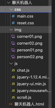 body { font-family: "Microsoft YaHei";}.wrap { position: fixed; width: 450px; left: 50%; margin-left: -225px; top: 20px; bottom: 20px; border: 1px solid #ebebeb; background-color: #fff; border-radius: 10px; box-shadow: 0 0 30px rgba(0, 0, 0, 0.1); overflow: hidden;}.header { height: 55px; background: linear-gradient(90deg, rgba(246, 60, 47, 0.6), rgba(128, 58, 242, 0.6)); overflow: hidden;}.header h3 { color: #faf3fc; line-height: 55px; font-weight: normal; float: left; letter-spacing: 2px; margin-left: 25px; font-size: 18px; text-shadow: 0px 0px 5px #944846;}.header img { float: right; margin: 7px 25px 0 0; border-radius: 20px; box-shadow: 0 0 5px #f7f2fe;}.main { position: absolute; left: 0; right: 0; top: 55px; bottom: 55px; background-color: #f4f3f3; box-sizing: border-box; padding: 10px 0; overflow:hidden;}.talk_list{ position: absolute; width:100%; left:0px; top:0px;}.talk_list li { overflow: hidden; margin: 20px 0px 30px;}.talk_list .left_word img { float: left; margin-left: 20px;}.talk_list .left_word span { float: left; background-color: #fe9697; padding: 10px 15px; max-width: 290px; border-radius: 12px; font-size: 16px; color: #fff; margin-left: 13px; position: relative; line-height: 24px;}.talk_list .left_word span:before { content: ""; position: absolute; left: -8px; top: 3px; width: 13px; height: 12px; background: url("../img/corner01.png") no-repeat;}.talk_list .right_word img { float: right; margin-right: 20px;}.talk_list .right_word span { float: right; background-color: #fff; padding: 10px 15px; max-width: 290px; border-radius: 12px; font-size: 16px; color: #000; margin-right: 13px; position: relative; line-height: 24px;}.talk_list .right_word span:before { content: ""; position: absolute; right: -8px; top: 3px; width: 13px; height: 12px; background: url("../img/corner02.png") no-repeat;}.drag_bar{ position:absolute; right:0px; top:0px; background-color: #fff; height:100%; width:6px; box-sizing:border-box; border-bottom:1px solid #f4f3f3;}.drager{ position:absolute; left:0px; top:0px; background-color: #cdcdcd; height:100px; width:6px; border-radius:3px; cursor: pointer;} .footer{ width:100%; height: 55px; left:0px; bottom:0px; background-color:#fff; position: absolute;} .footer img{ float: left; margin:8px 0 0 20px;} .input_txt{ float: left; width:270px; height:37px; border:0px; background-color: #f4f3f3; margin:9px 0 0 20px; border-radius:8px; padding:0px; outline:none; text-indent:15px;}.input_sub{ float: left; width:70px; height:37px; border:0px; background-color: #fe9697; margin:9px 0 0 15px; border-radius:8px; padding:0px; outline:none; color:#fff; cursor: pointer; }reset.css部分