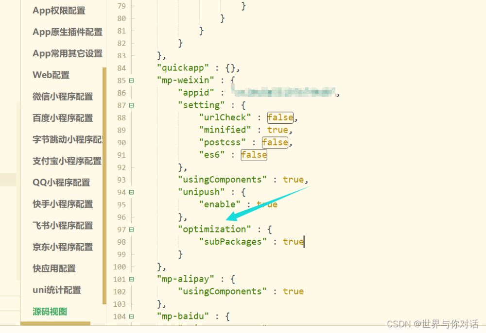 optimization下的subPackages節點時用來控制微信分包的,需要將此節點設為true
