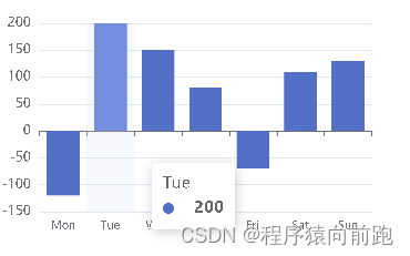import * as echarts from "../../base-ui/ec-canvas/echarts";let chart = null;function initChart(canvas, width, height, dpr) { chart = echarts.init(canvas, null, { width: width, height: height, devicePixelRatio: dpr // new }); canvas.setChart(chart); var option = { tooltip: {trigger: "axis",axisPointer: { type: "shadow"} }, xAxis: {type: "category",data: ["Mon", "Tue", "Wed", "Thu", "Fri", "Sat", "Sun"],axisLabel:{ fontSize:10}, }, yAxis: {type: "value", }, series: [{ data: [-120, 200, 150, 80, -70, 110, 130], type: "bar"} ] }; chart.setOption(option); return chart;}Page({ onShareAppMessage: function (res) { return { title: "ECharts 可以在微信小程序中使用啦!", path: "/pages/index/index", success: function () { }, fail: function () { } } }, data: { ec: { onInit: initChart } }, onReady() { setTimeout(function () { // 獲取 chart 實(shí)例的方式 // console.log(chart) }, 2000); }});