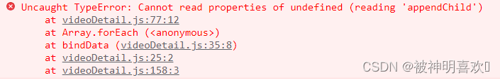 // 獲取元素var kecheng = document.querySelector('.classlist .kecheng');// 頁面初始化bindData(classList);到此這篇關于js控制臺報錯Uncaught TypeError: Cannot read properties of undefined (reading ‘appendChild‘)的解決的文章就介紹到這了,更多相關js控制臺報錯Uncaught TypeError內容請搜索好吧啦網以前的文章或繼續瀏覽下面的相關文章希望大家以后多多支持好吧啦網!