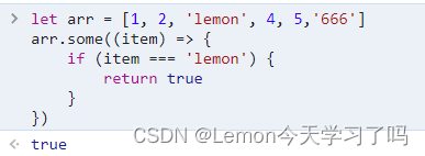 let arr = [1, 2, 'lemon', 4, 5,'666']arr.some((item) => { if (item === 'lemon') {return true }})