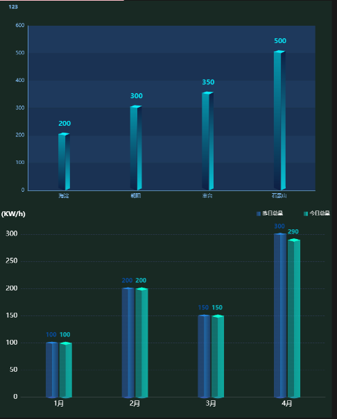看了不少關于3d柱狀圖的案例,發現做3d柱狀圖 常用的兩種方式就是 自定義圖形和象型柱圖, 兩種實現方式效果如下: