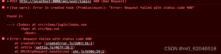 最近在做一個項目,后端寫了一個登錄接口,postman可以正常請求。但我axios發請求出現400錯誤"Error: Request failed with status code 400"