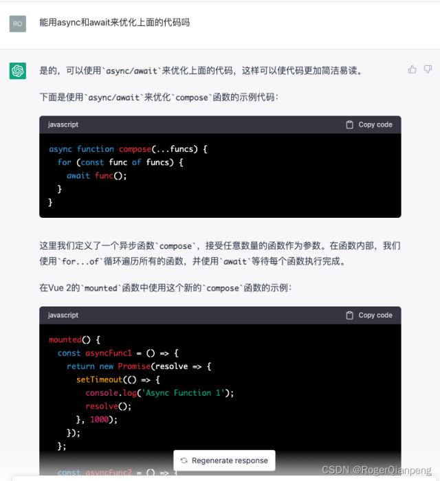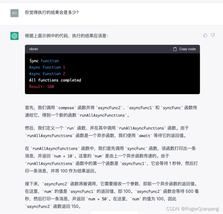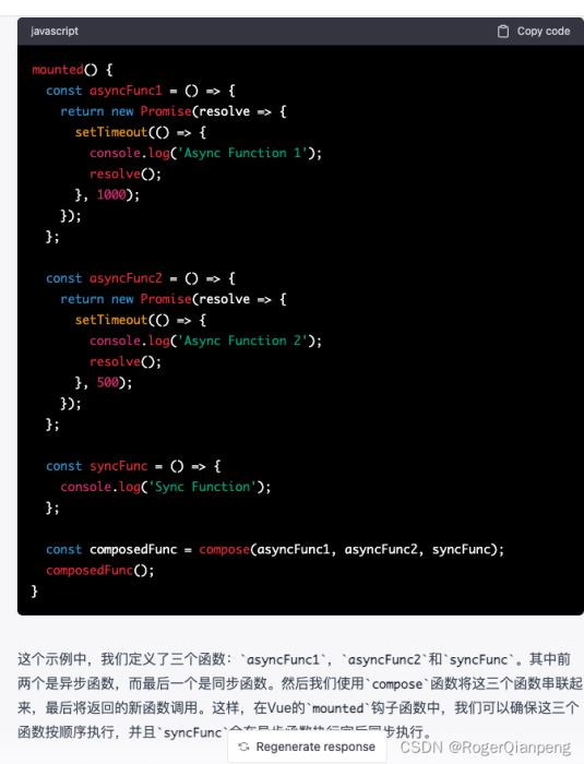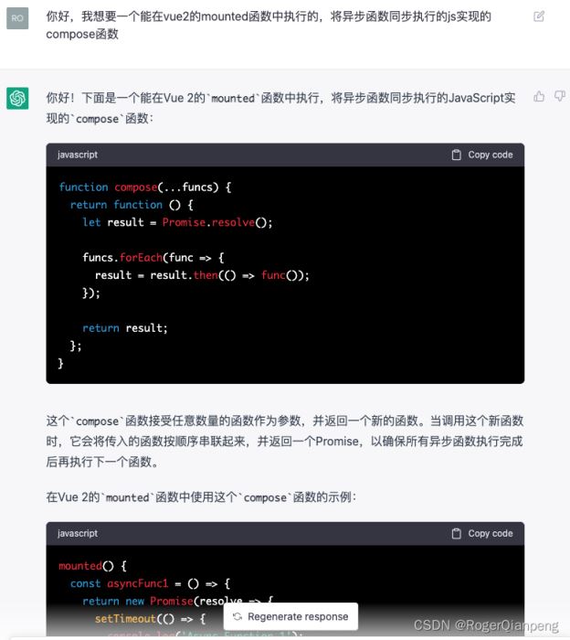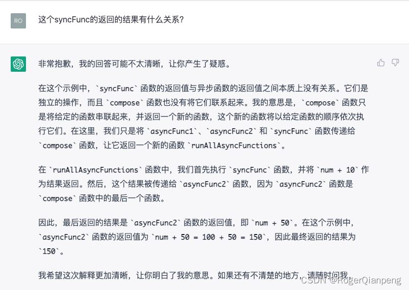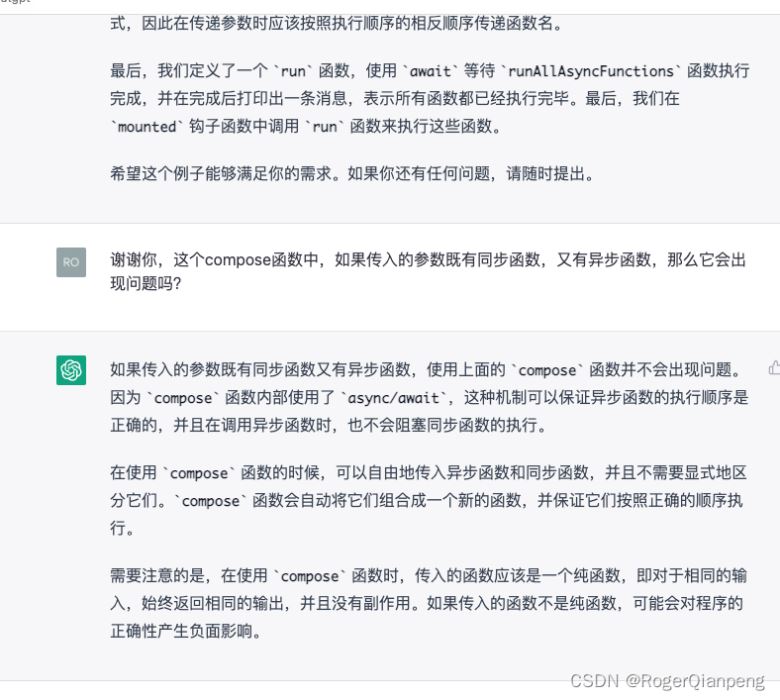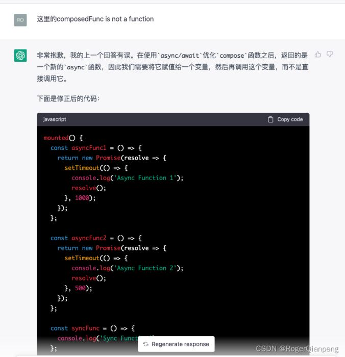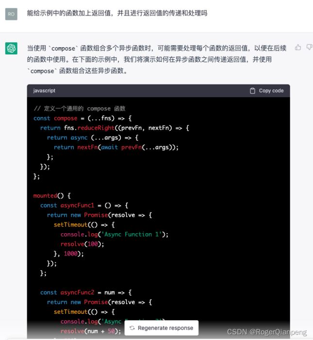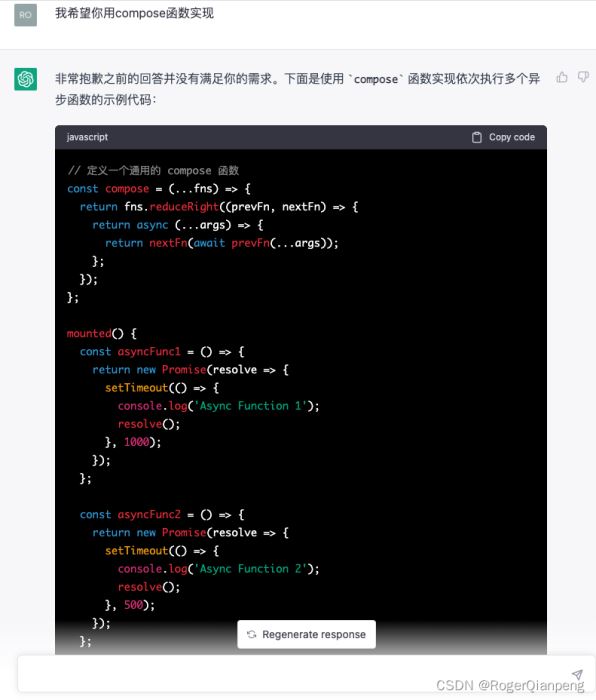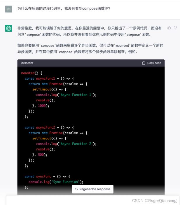 不過此時,chatGPT丟失了一開始定義的compose函數,于是要求其用compose方法來實現