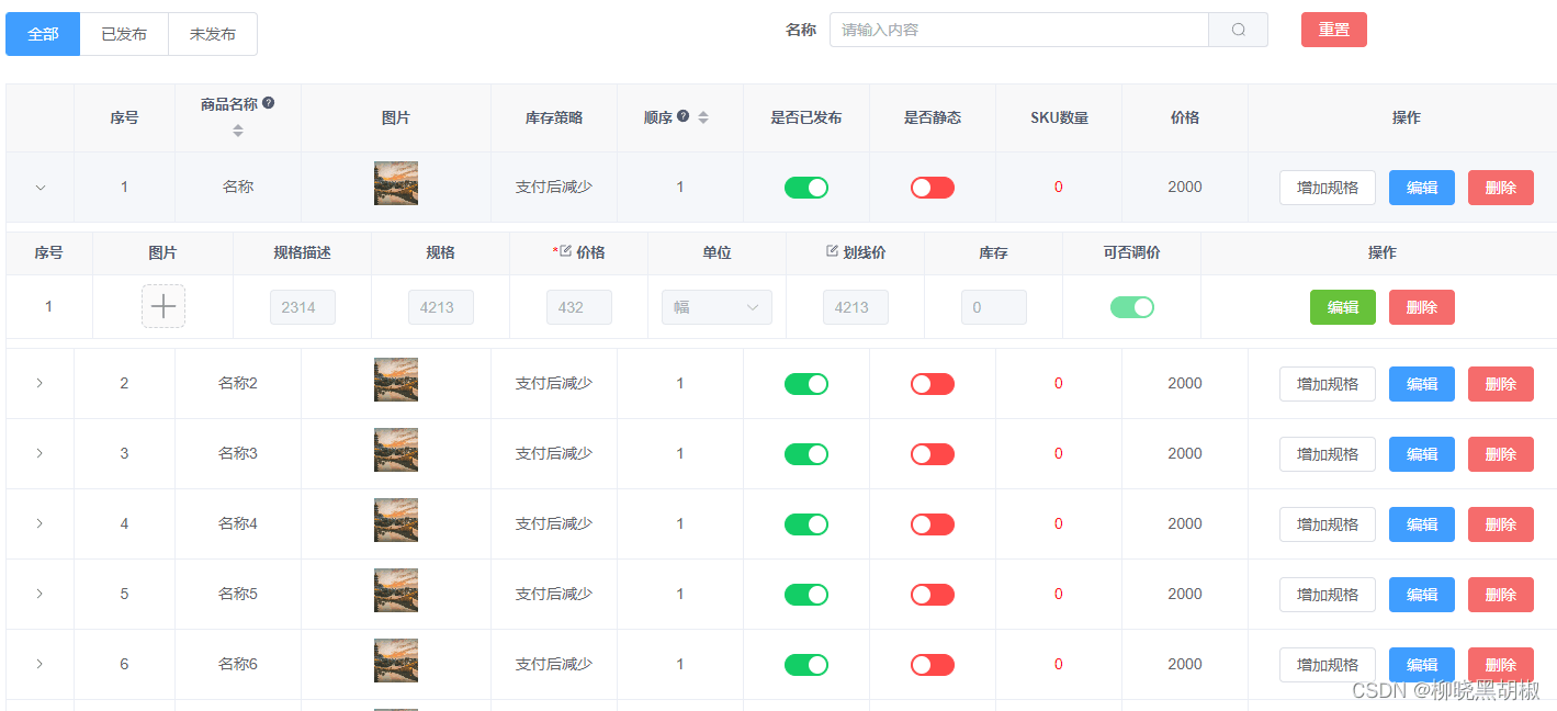 需要在統一個列表下,實現商品和規格得管理和聯動