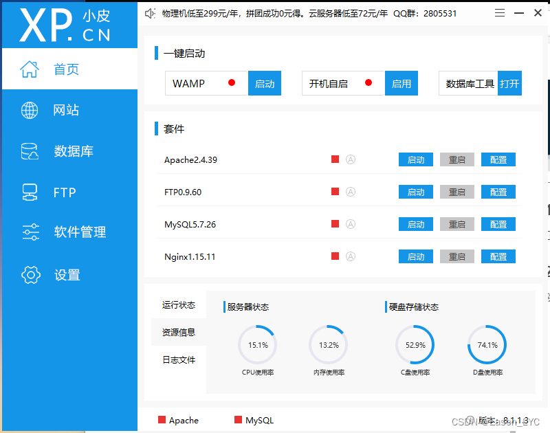 以上是官方宣傳語,翻譯成普通話就是,傻瓜式操作(鼠標點點點),可使用它搭建php網站運行環境,方便后續web靶場和相關漏洞環境的搭建。