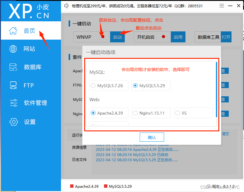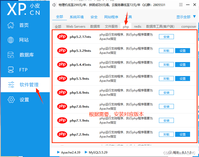一般需要配置Web Server 、數據庫和php 大家可以根據需要安裝指定版本軟件,點擊安裝按鈕即可。 Web Server 安裝apache或者nginx指定版本服務器數據庫:安裝mysql指定版本數據庫php: 安裝指定版本的php
