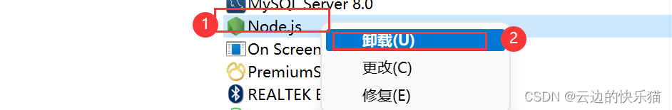 1.控制面板卸載node.js