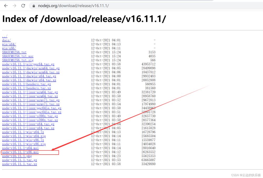 node.js官網以往的版本地址: