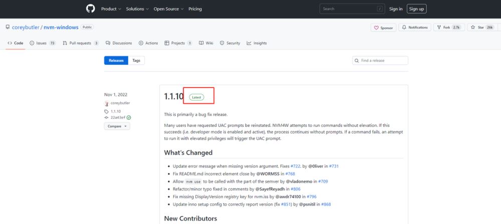 (1)打開 nvm-windows的下載地址 ,如下,點擊進入最新版本
