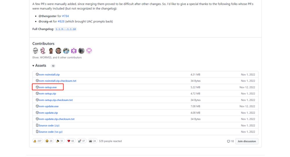 安裝包下載地址:Releases · coreybutler/nvm-windows · GitHub,windows系統(tǒng)下載nvm-setup.zip安裝包
