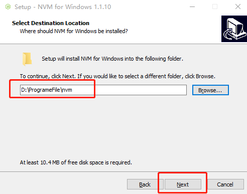 2.選擇nvm安裝路徑