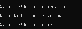 (12)再次以管理員權(quán)限重新打開cmd窗口,執(zhí)行nvm list查看當前已經(jīng)安裝的版本,如下表示目前尚未安裝任何node的版本