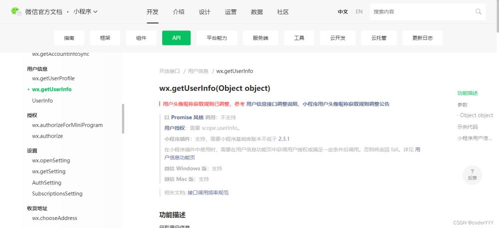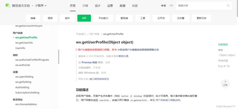 對(duì)應(yīng)的官方文檔:https://developers.weixin.qq.com/miniprogram/dev/api/open-api/user-info/wx.getUserProfile.html