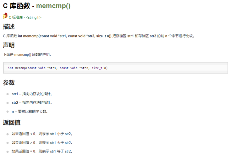 https://www.runoob.com/cprogramming/c-function-memcmp.html