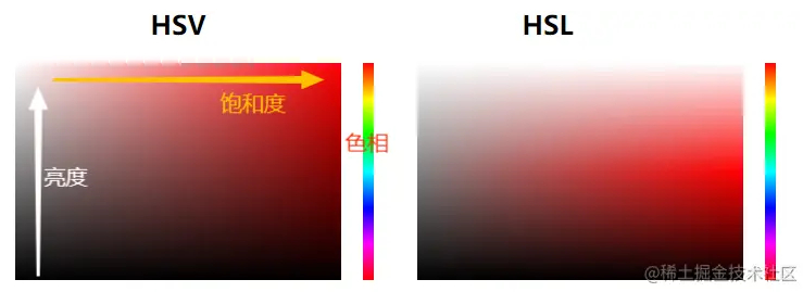 HSV是基于色相H(hue)、飽和度S(saturation)、明度V(Value);HSL基于色相H(hue)、飽和度S(saturation)、亮度L(lightness)。
