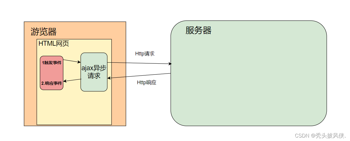 ajax原理分析我們自己定義觸發事件,在觸發事件里面編寫ajax代碼當事件觸發時,游覽器將會發送ajax異步請求,本質還是http請求服務器返回數據,我們通過回調函數來對返回數據進行處理將數據展示到頁面上,實現局部更新