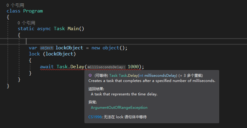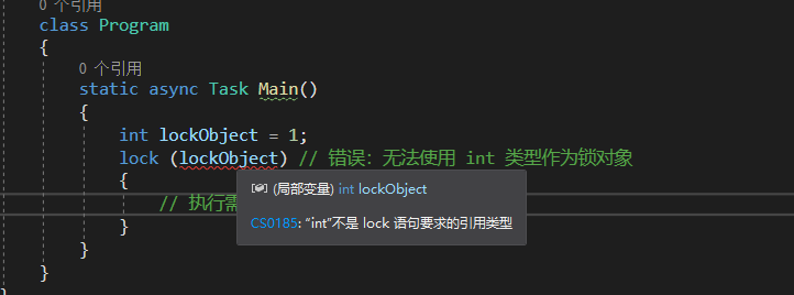 lock 關(guān)鍵字的鎖對象必須是引用類型,而不能是值類型。