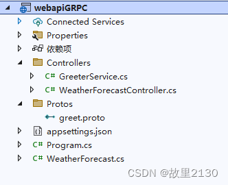 <ItemGroup> <Protobuf Include='Protos\greet.proto' GrpcServices='Server' /> </ItemGroup>所有文件