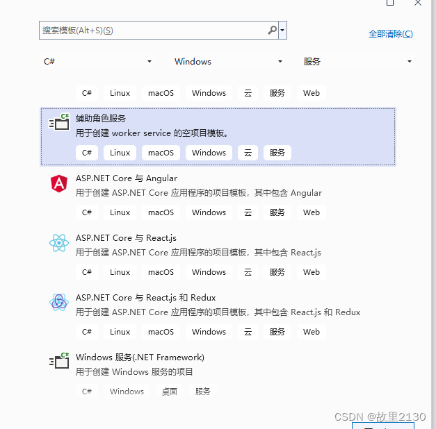 1.選擇如圖所示,其中vs2022這樣的,vs2019不一樣,但是都是worker service