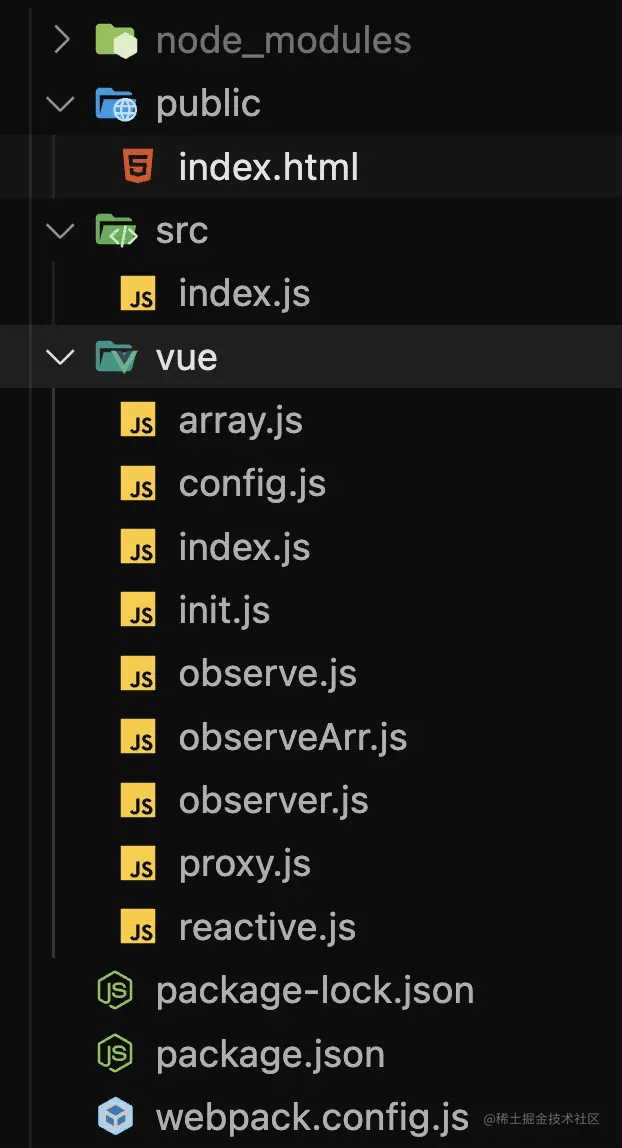 // index.js// 我們?cè)?webpack.config.js 中進(jìn)行了配置,所以這里優(yōu)先在當(dāng)前目錄下尋找 vue 文件,也就是我們的 vue/index.js 文件import Vue from "vue"; let vm = new Vue({ el: "#app", data() { return { title: "學(xué)生列表", classNum: 1, teacher: ["張三", "李四"], info: {a: { b: 1} }, students: [{ id: 1, name: "小紅"},{ id: 2, name: "小明"} ] }; }});console.log(vm);vue/index.js 文件主要是負(fù)責(zé)初始化內(nèi)容
