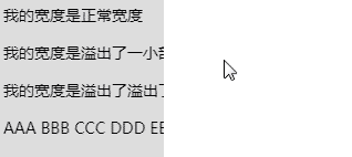 <div> <p title="我的寬度是正常寬度">我的寬度是正常寬度</p> <p title="我的寬度是溢出了一小部分">我的寬度是溢出了一小部分</p> <p title="我的寬度是溢出了溢出了很大一部分">我的寬度是溢出了溢出了很大一部分</p></div>