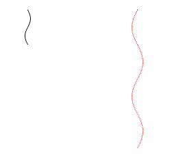 @function shadowSet($vx, $vy, $direction, $count, $color) { $shadow : 0 0 0 0 $color; @for $i from 0 through $count {$x: sin($i / 8) * $vx * $direction;$y: $i * $vy; $shadow: $shadow, #{$x} #{$y} 0 0 $color; } @return $shadow;}.line { width: 1px; height: 1px; margin: 10vh auto; background: #000; border-radius: 50%; box-shadow: shadowSet(4px, 1px, 1, 50, #000);} .reverseline { width: 1px; height: 1px; margin: 10vh auto; background: #000; border-radius: 50%; box-shadow: shadowSet(8px, 2px, -1, 100, red);}