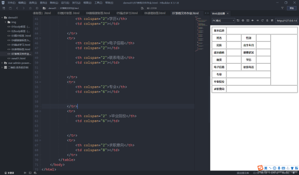表格標(biāo)簽練習(xí)(繪出求職簡(jiǎn)歷表)