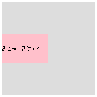 <div id="box"> <div id="child">我也是個測試DIV</div></div></pre>css代碼:#box { width: 300px; height: 300px; background: #ddd; position: relative;} #child { width: 50%; height: 30%; background: pink; position: absolute; top: 50%; margin: -15% 0 0 0;}運行結(jié)果如下: