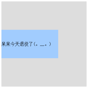 <div id="box"> <div id="child">呆呆今天退役了(。﹏。)</div></div></pre>css代碼:#box { width: 300px; height: 300px; background: #ddd; position: relative;} #child { width: 200px; height: 100px; background: #A1CCFE; position: absolute; top: 0; bottom: 0; margin: auto; line-height: 100px;}運行結(jié)果如下: