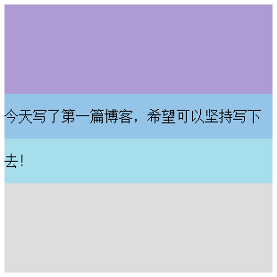 <div id="box"> <div id="base"></div> <div id="child">今天寫了第一篇博客,希望可以堅持寫下去! </div></div>css代碼:#box { width: 300px; height: 300px; background: #ddd;} #base { height: 50%; background: #AF9BD3;} #child { height: 100px; background: rgba(131, 224, 245, 0.6); line-height: 50px; margin-top: -50px;}運行結(jié)果如下:
