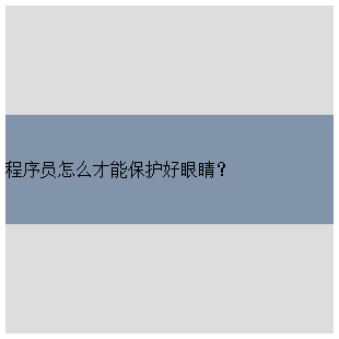 <div id="box"> <div id="child"> 程序員怎么才能保護好眼睛? </div></div>css代碼:#box { width: 300px; height: 300px; background: #ddd; display: flex; align-items: center;}#child { width: 300px; height: 100px; background: #8194AA; line-height: 100px;}運行結(jié)果如下: