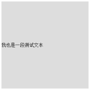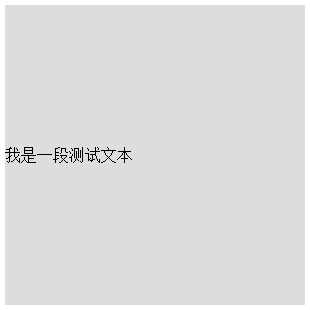 <div id="box"> <div id="child">我也是一段測試文本</div></div>css代碼:#box { width: 300px; height: 300px; background: #ddd; display: table;} #child { display: table-cell; vertical-align: middle;}運行結(jié)果如下: