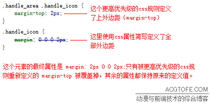 注意,前端調(diào)試工具顯示的,”被劃掉“的css樣式,并不是說(shuō)一定是完全覆蓋。css中的一些組合屬性(比如margin,可以拆分為margin-top、margin-right、margin-bottom、margin-left),在這種樣式覆蓋中遵循的是局部覆蓋的原則,即使在前端調(diào)試工具中它們看起來(lái)“整個(gè)都被劃掉了”: