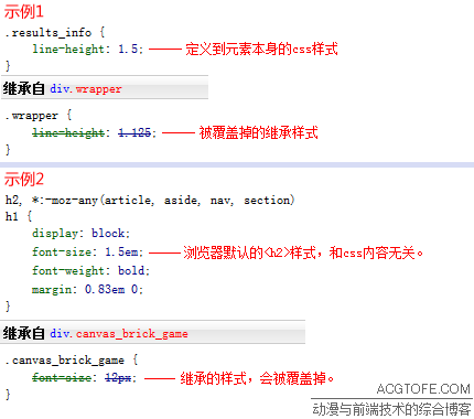 圖中由前端調(diào)試工具所顯示的,被劃掉的css樣式,不會(huì)呈現(xiàn)在這里選中的網(wǎng)頁(yè)元素上,因?yàn)樗鼈儽桓采w掉了。css優(yōu)先級(jí),就是指在這種情況下,得出“應(yīng)該由哪一條樣式規(guī)則的內(nèi)容覆蓋掉其他的”這個(gè)結(jié)論的過(guò)程中所遵循的原則。更一般的表述是,優(yōu)先級(jí)高的css樣式,將覆蓋優(yōu)先級(jí)低的css樣式,成為最終網(wǎng)頁(yè)元素的實(shí)際樣式。