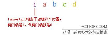 !important是可以寫(xiě)在樣式規(guī)則中的某一屬性定義值后的標(biāo)識(shí)符,用于提升某一屬性的樣式定義的優(yōu)先級(jí)。不同于決定整條樣式規(guī)則優(yōu)先級(jí)的css選擇符權(quán)重,!important只影響自己所在位置的單一屬性。!important在優(yōu)先級(jí)原則中,可以理解為前文的(a,b,c,d)結(jié)構(gòu)中的,比a更高位的標(biāo)識(shí):