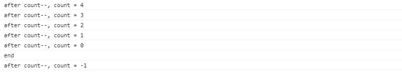這段代碼,邏輯上沒有什么問題, 就是當count==0的時候,我們清除定時器。我們運行這段代碼,看看效果: