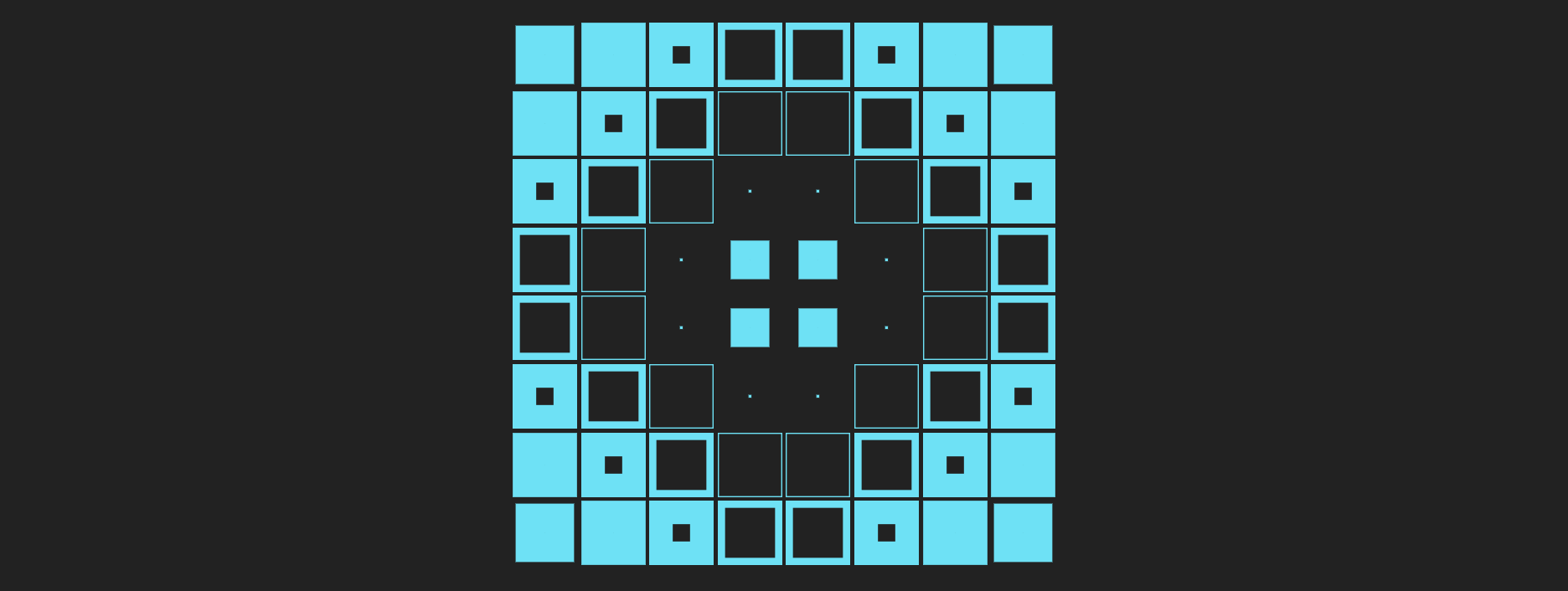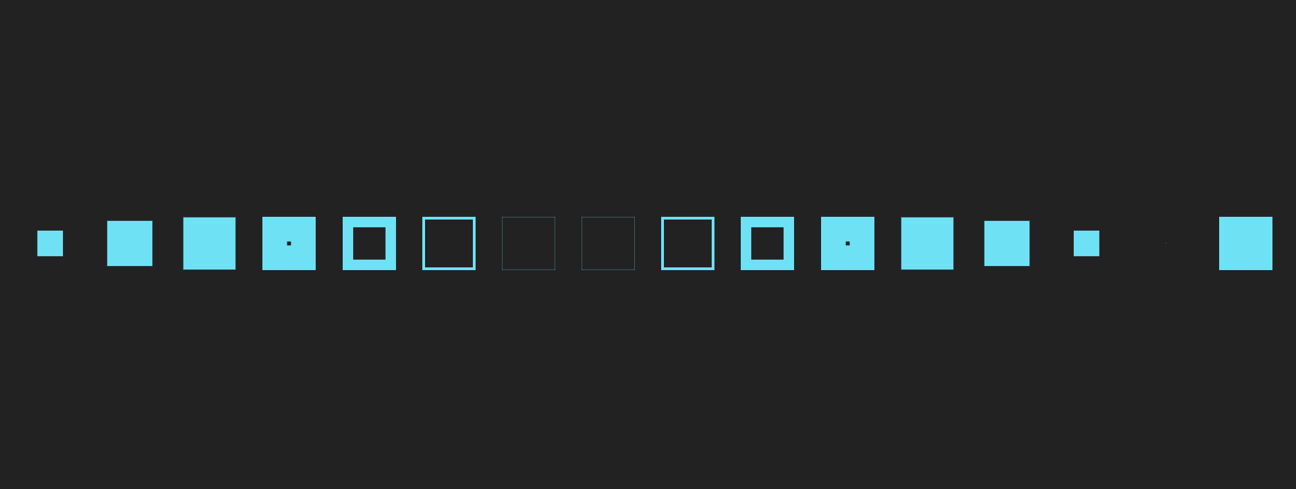 body { display: flex; justify-content: center; align-items: center; min-height: 100vh; margin: 0; background: #222;}:root { --blue-color-1: #6ee1f5;}(這里復制粘貼上文所有的數學公式).list { --n: 16; display: flex; flex-wrap: wrap; justify-content: space-evenly; &-item { --p: 2vw; --gap: 1vw; --bg: var(--blue-color-1); @for $i from 1 through 16 { &:nth-child(#{$i}) {--i: #{$i}; } } padding: var(--p); margin: var(--gap); box-shadow: inset 0 0 0 var(--p) var(--bg); }}