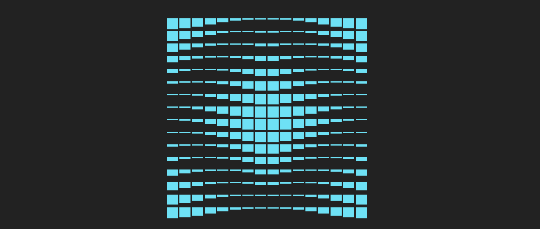 .grid { $row: 16; $col: 16; --row: #{$row}; --col: #{$col}; --gap: 0.25vw; &-item { --p: 1vw; transform-origin: bottom; transform: scaleY(0.1); } &.shuffle { .grid-item { --t: 2s; animation: shuffle var(--t) infinite ease-in-out alternate; } }}@keyframes shuffle { 0% { transform: scaleY(0.1); } 50% { transform: scaleY(1); transform-origin: bottom; } 50.01% { transform-origin: top; } 100% { transform-origin: top; transform: scaleY(0.1); }}