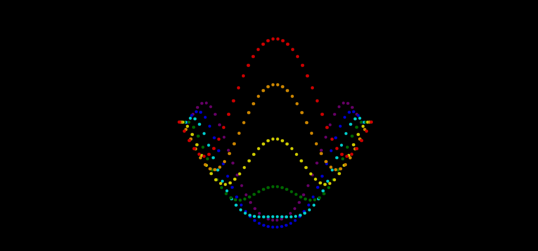 運用上文的三角函數公式,讓這些小圓點以余弦的一部分形狀進行排列